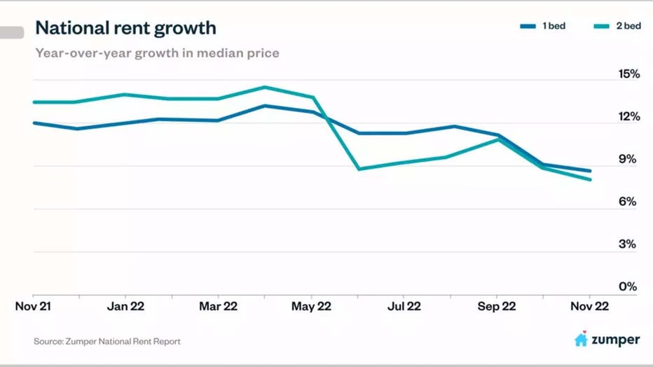 Year-over-year growth in median price of rentals (Credit: Zumper National Rent Report)