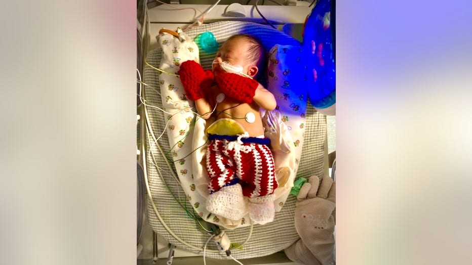 Tara Fankhauser, a NICU nurse at Children's Healthcare of Atlanta, crochets Halloween costumes for the newborns in her care. (FOX 5 Atlanta)