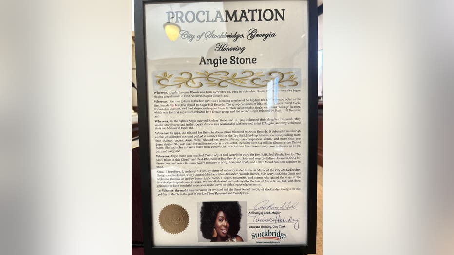 "We are all shocked and saddened by the loss of Angie Stone, but, with deep gratitude, we have wonderful memories as she leaves us with a legacy of great music," the proclamation reads in part.