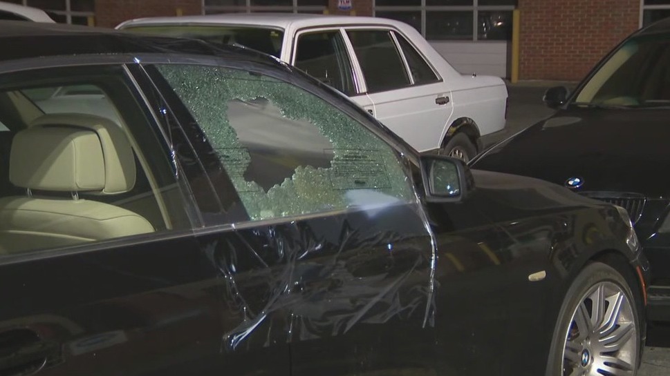 Surveillance video captured 5 people going from car to car smashing windows in a parking lot where several auto repair shops are located on Roswell Road in Marietta. Business owners say 11 cars were broken into.