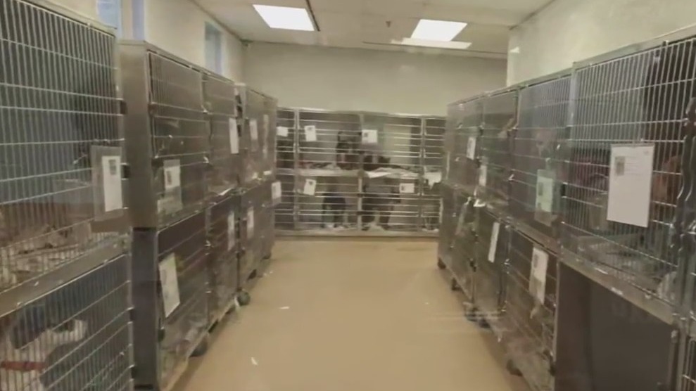 Officials said the shelters are over capacity and need to place more than 40 dogs by the end of the day. To encourage adoptions, all fees are being waived.