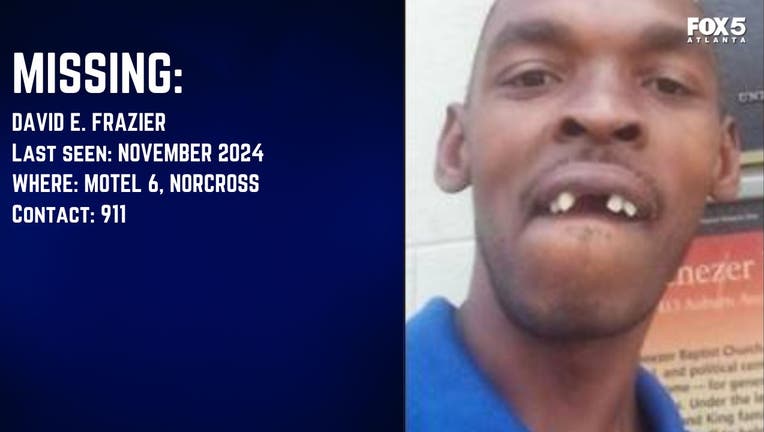 Frazier was last seen in November at a Motel 6 off Oakbrook Parkway in unincorporated Norcross. According to his family, he had plans to relocate to Atlanta near Luckie Street, but he has not been heard from since.