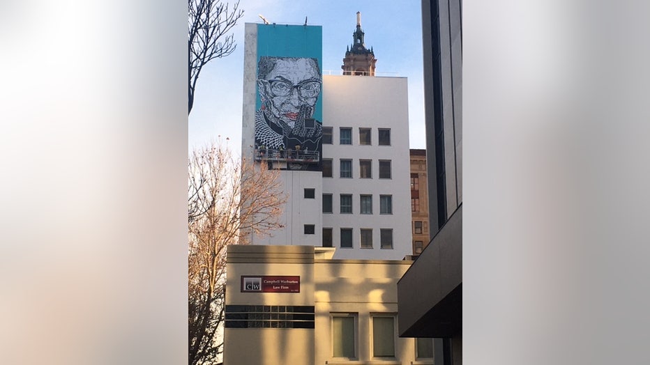 An eight-story larger than life artwork celebrating Ruth Bader Ginsburg is going up on a building in San Jose.