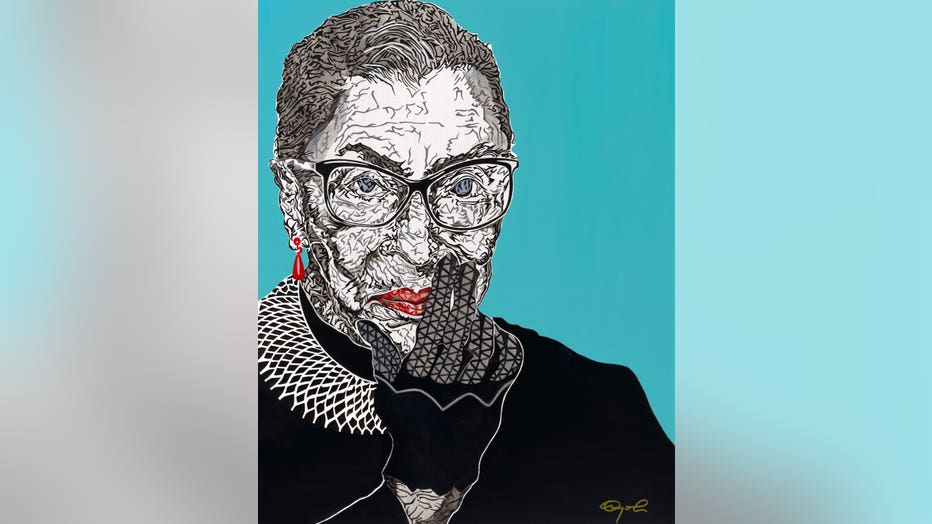 Oyolu, who is a scientist by day and only considers himself a "moonlighting artist," said he wanted to capture Ginsburg's "sophisticated and playful" attitude in her larger than life masterpiece.