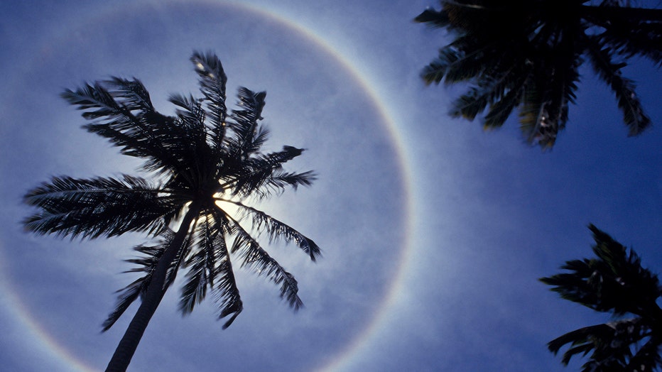 Palm tree surrounded by a circular rainbow, Bahia State, Northeastern Brazil. (Photo by Ricardo Funari/Brazil Photos/LightRocket via Getty Images)