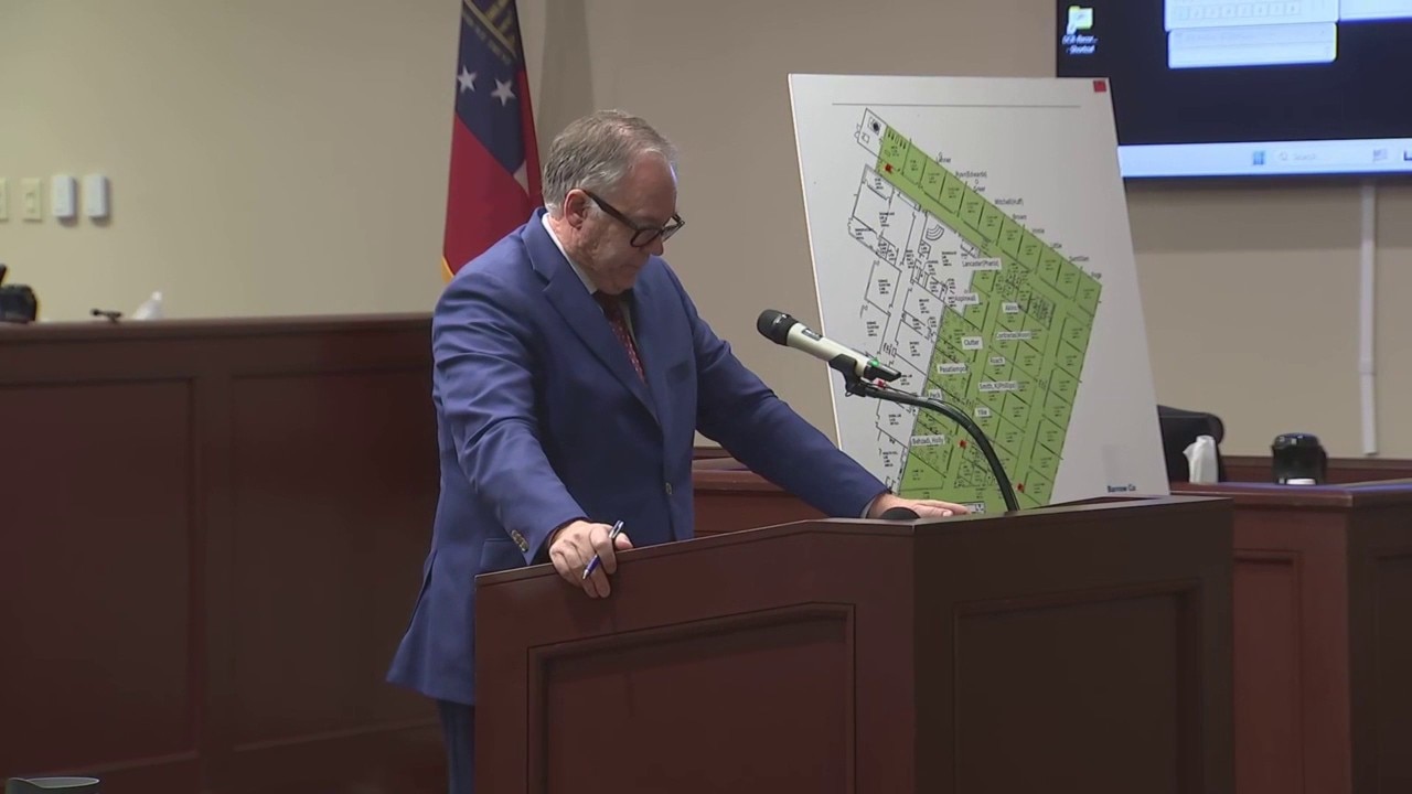 Barrow County District Attorney Brad Smith delivers opening statements in the Colin Gray trial. Colin Gray is the father of Colt Gray, accused Apalachee High School mass shooter.