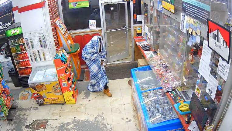 According to the report, an unidentified male entered the store using a blue and white patterned blanket to conceal his identity. The thief forced his way through a door leading to the front counter, brandished a firearm, and struck the employee multiple times. He then stole approximately $150 from the cash register before running away.