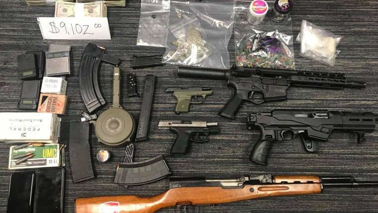 SOUTH FULTON, Ga. - Police in South Fulton said officers confiscated several guns, various drugs and more than $9,000 in cash.