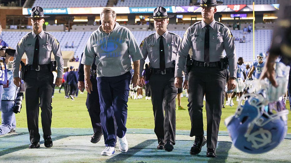 CHAPEL HILL, NC - SEPTEMBER 01: Head Coach Bill Belichick of the North Carolina Tar Heels walks back to the locker room after the college football game between the North Carolina Tar Heels and the TCU Horned Frogs on September 1, 2025 at Kenan Memori