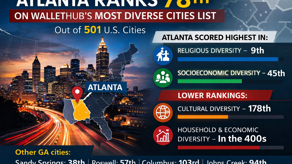 ATLANTA - A new study suggests Atlanta may not be as diverse as many people might expect — at least when compared with cities across the country.