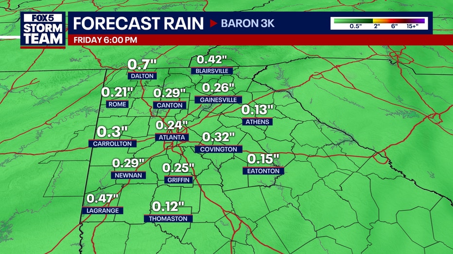 ATLANTA - Rain is expected to return to North Georgia late Thursday, bringing a period of steady showers and the potential for a few rumbles of thunder before clearing out by Friday morning.