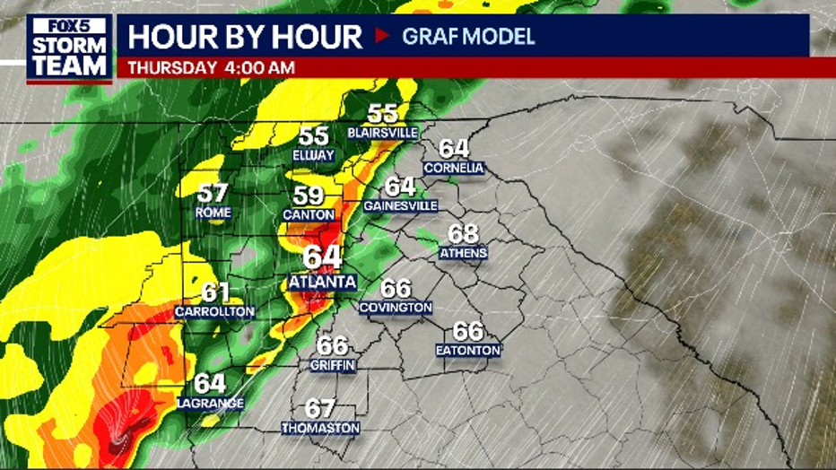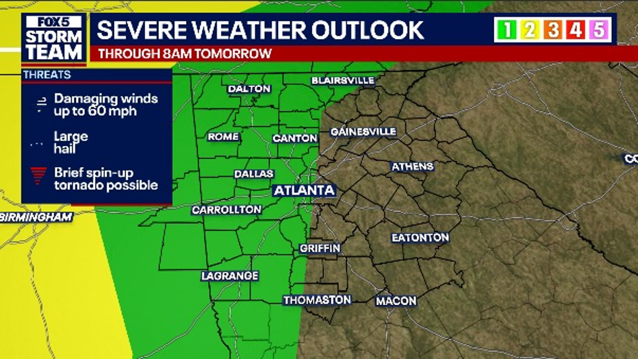 Forecasters say a cold front moving in from the west will bring a line of storms to the area late Wednesday night into early Thursday morning. While the most intense severe weather is expected to remain west of Georgia, metro Atlanta could still see strong storms.