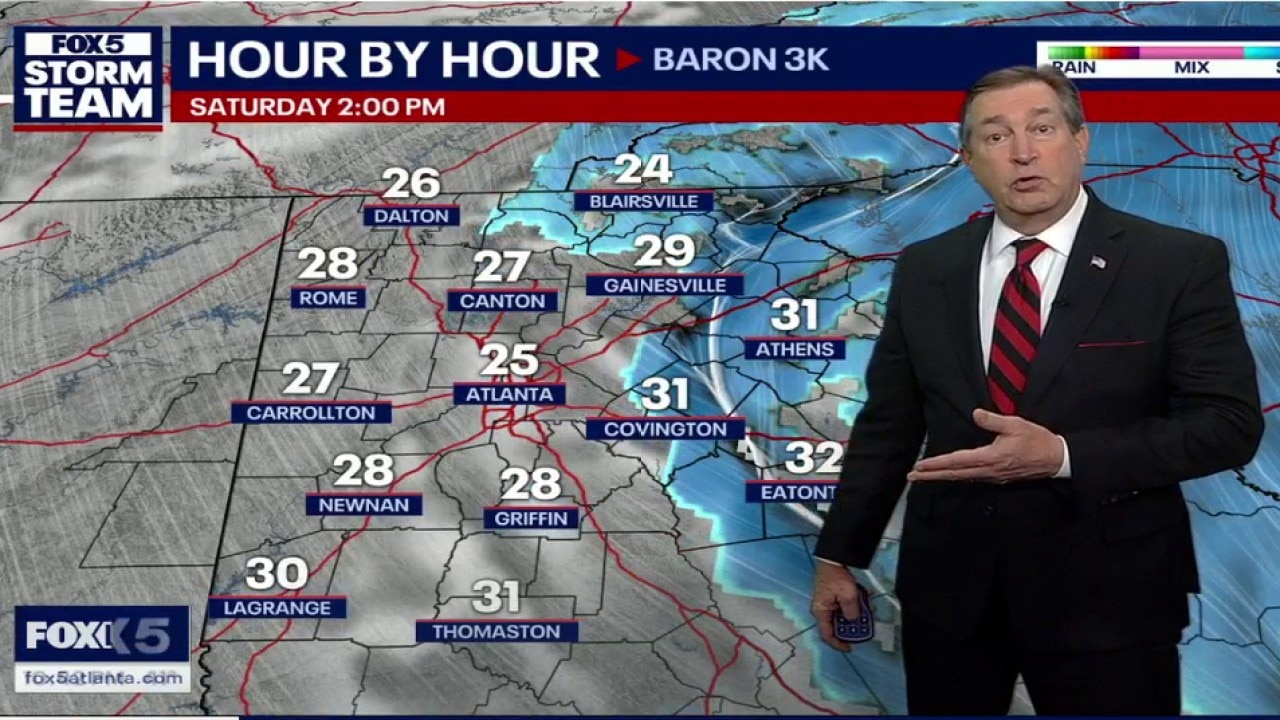 - Atlanta Saturday High: 28°F (Chance of precip: 70%)