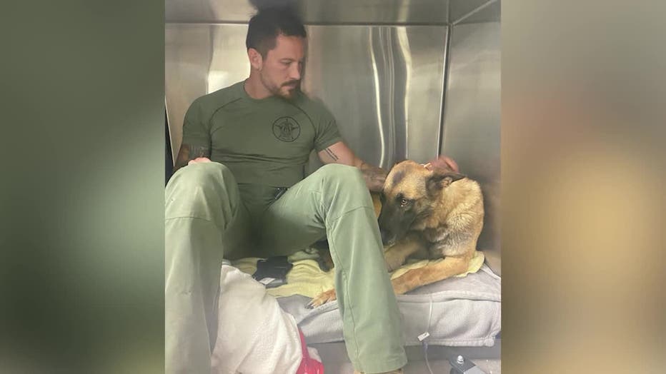"Athos is doing very well. He’s resting comfortably, of course he’s on pain meds and antibiotics," Holly Cripps, with We Ride to Provide K-9 Memorial, said after checking in with Athos’ handler.