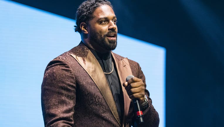 Cam Jordan of the New Orleans Saints speaks onstage during the Answer ALS And Team Gleason Game Changer Gala at Hyatt Regency New Orleans on March 12, 2022 in New Orleans, Louisiana. (Photo by Erika Goldring/Getty Images)