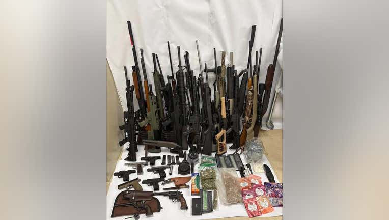 Carroll County Sheriff’s Office investigators seized a massive cache of firearms and illegal narcotics from a home following a domestic violence investigation sparked by a DFCS referral on March 4, 2026. (Carroll County Sheriff’s Office)
