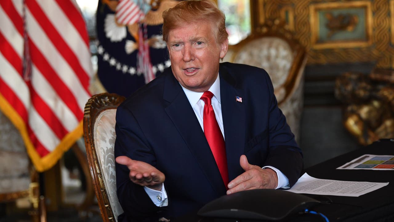 US President Donald Trump answers questions from reporters after making a video call to the troops stationed worldwide at the Mar-a-Lago estate in Palm Beach Florida, on December 24, 2019. (Photo by Nicholas Kamm / AFP) (Photo by NICHOLAS KAMM/AFP vi