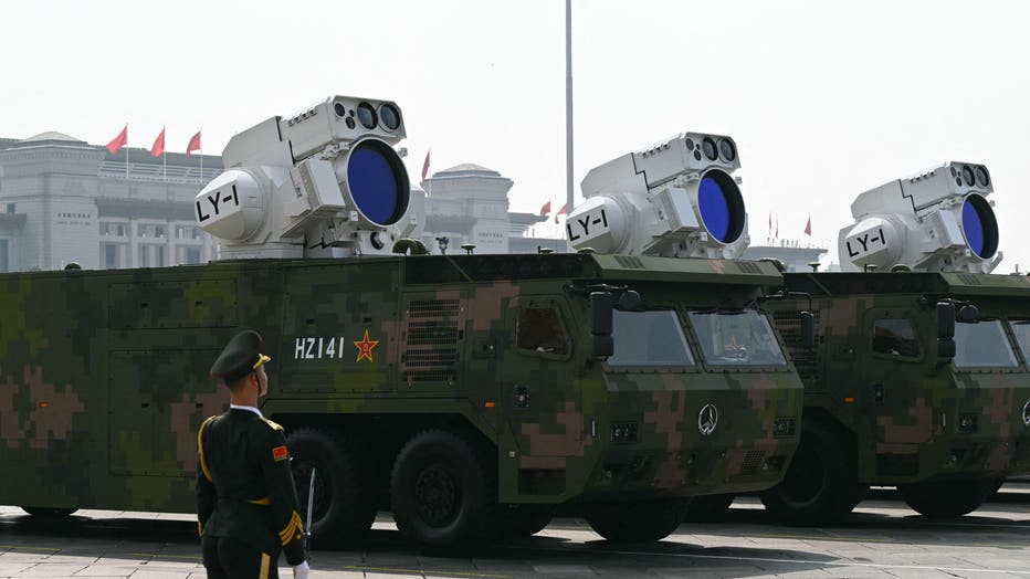 Laser weapons are seen during a military parade marking the 80th anniversary of victory over Japan and the end of World War II, in Beijing's Tiananmen Square on September 3, 2025. (Photo by Greg Baker/AFP via Getty Images)