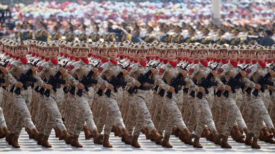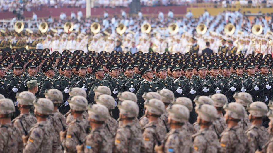 Members of the People's Liberation Army (PLA) march on Chang'an Avenue at Tiananmen Square during a military parade to mark 80 years since Japan's defeat in World War II held in Beijing, China, on Wednesday, Sept. 3, 2025. (Photographer: Qilai Shen/B