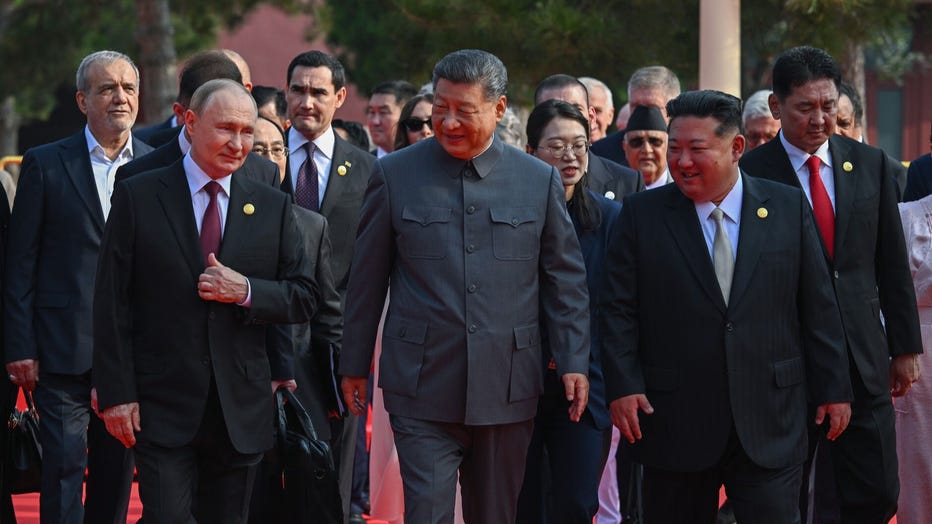 Leaders from about two dozen countries attended, including Russia's Vladimir Putin and a rare appearance from North Korea's Kim Jong Un. The two met formally for talks after attending the parade.
