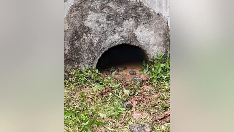 COBB COUNTY, Ga. - When a couple of teachers at Birney Elementary School heard whimpers coming from a nearby sewage drain, they sprung into action. Authorities say their quick-thinking may have saved a frightened dog's life.