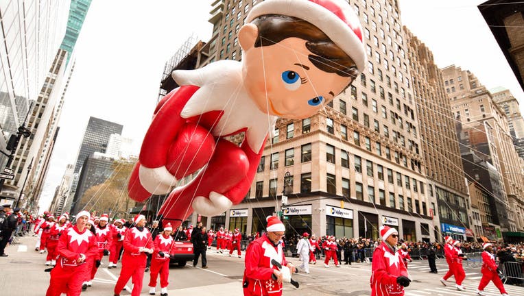 A Elf on the Shelf balloon seen at the 93rd Annual Macy's Thanksgiving Day Parade on November 28, 2019 in New York City. (Photo by James Devaney/Getty Images)