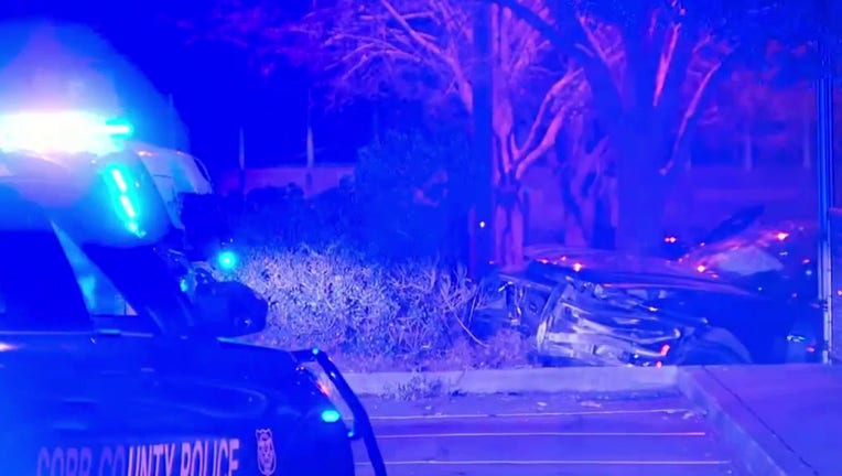 COBB COUNTY, Ga. - Police are investigating a chase that began in Cobb County and ended in Atlanta early Friday morning, leaving an officer with minor injuries and a suspect still at large.