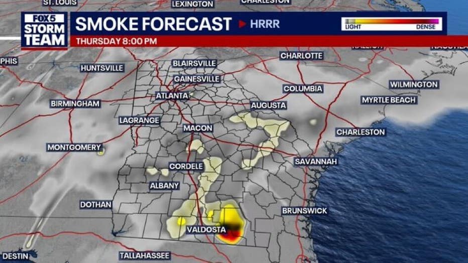 ATLANTA - Hazy skies and reduced air quality are expected again Thursday across parts of North Georgia as smoke from wildfires burning in South Georgia continues to drift north.