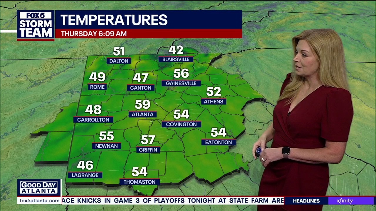 Temps starting out in high 40s and low 50s for most of metro Atlanta and North Georgia. Mid 80s expected for this afternoon. Still no rain.