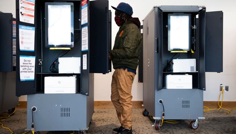 UNITED STATES - NOVEMBER 3: A voter is seen at a voting machine at the Metropolitan Library polling place on Election Day in Atlanta, Ga., on Tuesday, November 3, 2020. (Photo By Tom Williams/CQ-Roll Call, Inc via Getty Images)