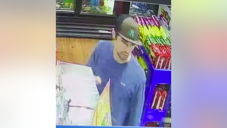 The suspect was described as a white man with dark hair and scrubby facial stubble. Police said he appeared to be in his 30s, and wore a long sleeved blue shirt and a gray or black trucker style hat with a blue logo.