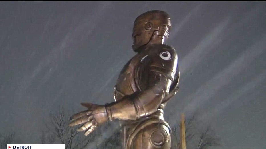 The statue inspired by the 1987 science fiction classic was installed at Eastern Market along Russell Street just south of Mack Avenue on Wednesday.