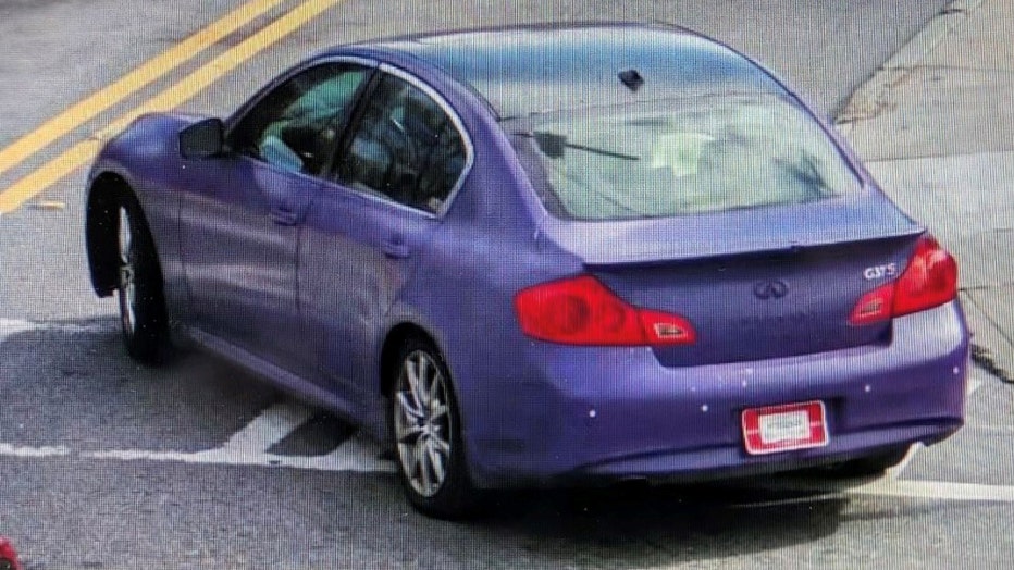 Police are looking for this purple Infiniti sedan, tag P7032929, which suspect Antonio Cordova used to flee the scene of a kidnapping in Doraville on Feb. 2, 2026. (Doraville Police Department)