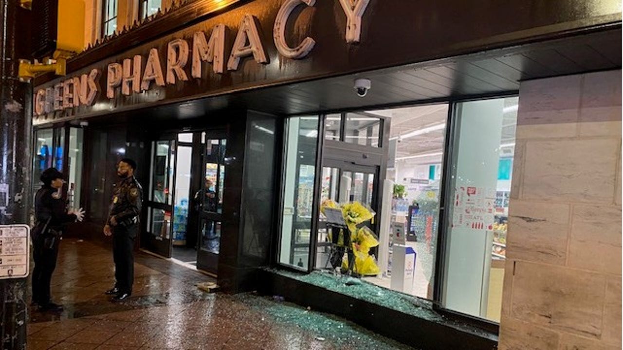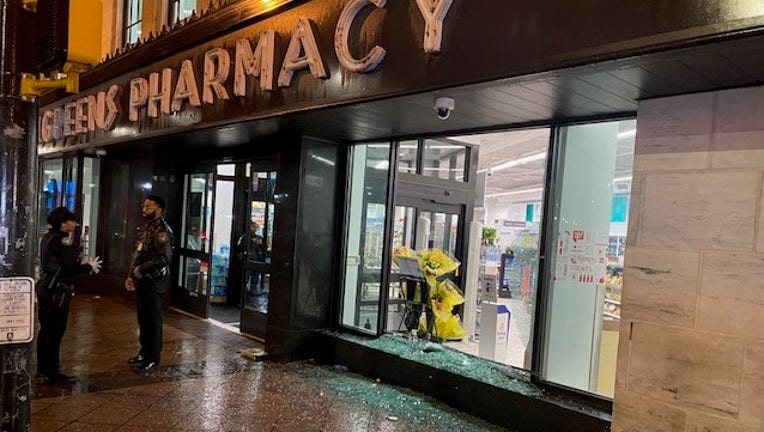 Officials say a man used a cinderblock to smash in the front window of the Walgreens, which is located on Peachtree Street.