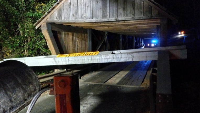 Driver 'bonks' beam protecting historic Cobb covered bridge