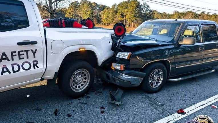 DULUTH, Ga. - Duluth police are warning drivers to slow down and move over after a car hit a public safety ambassador's truck.