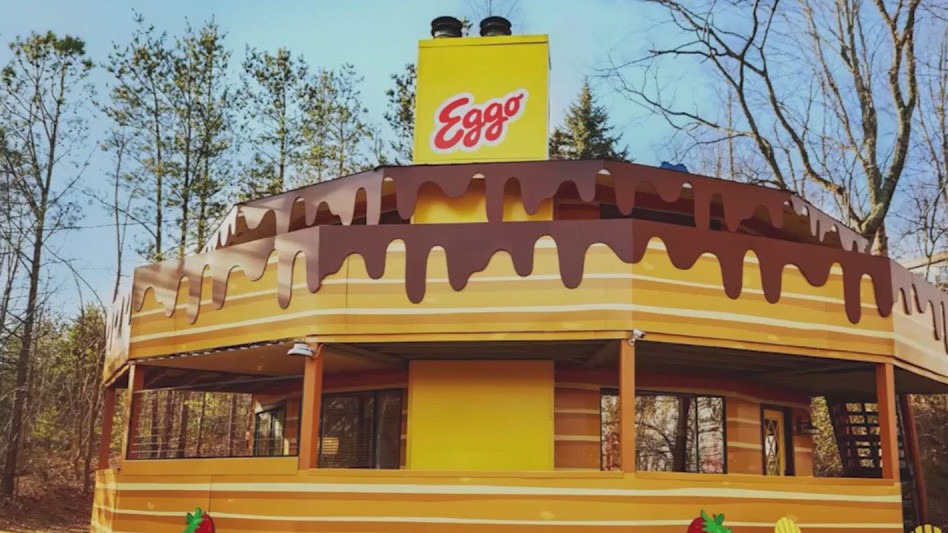 The Eggo House of Pancakes, located in the Pancake Capital of the South, Gatlinburg, introduces a short-stack-shaped home-away-from-home, complete with a stick-of-butter-shaped chimney and breakfast-inspired decor. From fluffy pancake beds to bean bag chairs, the atmosphere is immersed in pancake-themed comfort. Guests can enjoy toasting Eggo Mini Pancake s'mores at the fire pit with a picturesque view of the Smokies, indulge in the maple syrup fountain, and partake in game night in the basement gameroom featuring an Eggo pancake-fied pool table and more.