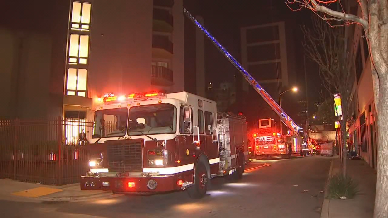 The fire was first reported at 4:47 a.m. at 330 Clementina St. Heavy smoke was reported on the 9th floor and 10th floor residents were ordered to shelter in place.