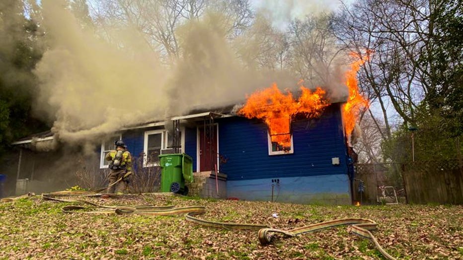 The fire happened at a one-story home on Rosemary Street Northwest. Atlanta Fire Rescue shared a photo of the blaze on Twitter Tuesday.