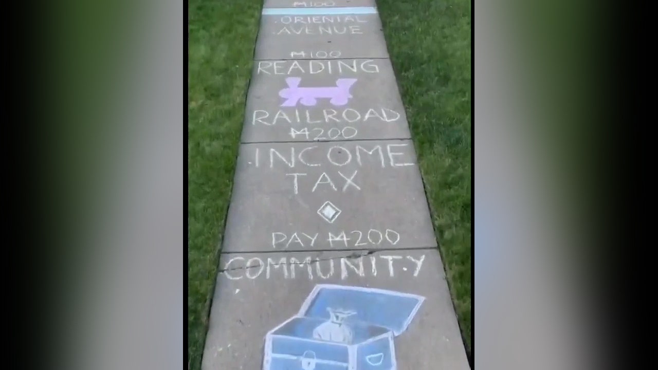 Family makes sidewalk chalk Monopoly game during COVID-19 lockdown