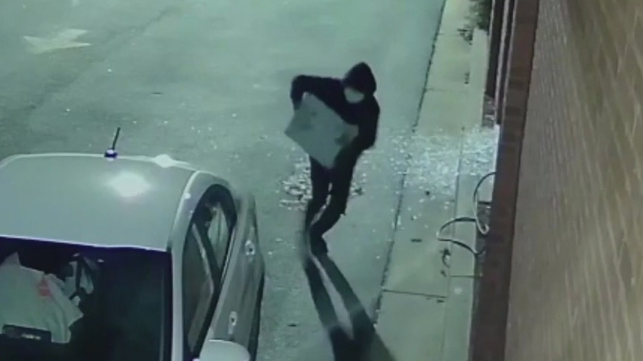 Under surveillance, the suspect threw an object through a window, shattering it. The security camera also caught him running out with what the sheriff later said was the cash register.