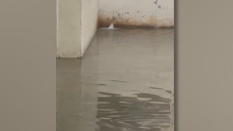 Deputies reportedly had to use blankets and sandbags to hold back the water that was coming through the ceiling and drain pipes.