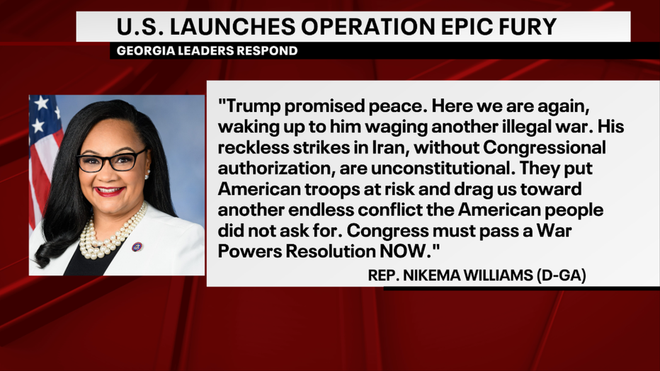 ATLANTA - Following an early morning attack on Iran, reactions are pouring in from across Georgia.