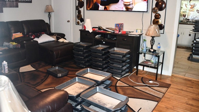 Federal agents discovered over 175 metal pans used to soak paper in synthetic cannabinoids during a raid of a Cordele home on July 22, 2024. (U.S Attorney’s Office for the Middle District of Georgia)