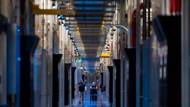People walk through the hallways at Equinix Data Center in Ashburn, Virginia, on May 9, 2024. (Amanda Andrade-Rhoades for The Washington Post via Getty Images)