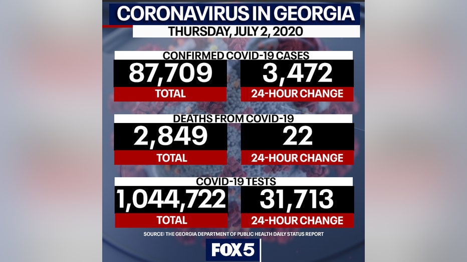 The data also suggests health care workers have their work cut out for them as they have been keeping the deaths from COVID-19 low in Georgia. The GDPH reported there have been a total of 2,849 deaths from COVID-19, that's up 22 from Wednesday. That is a far cry from the triple digits when this pandemic first began, but health officials warn that number could change if proper precautions are not continued.
