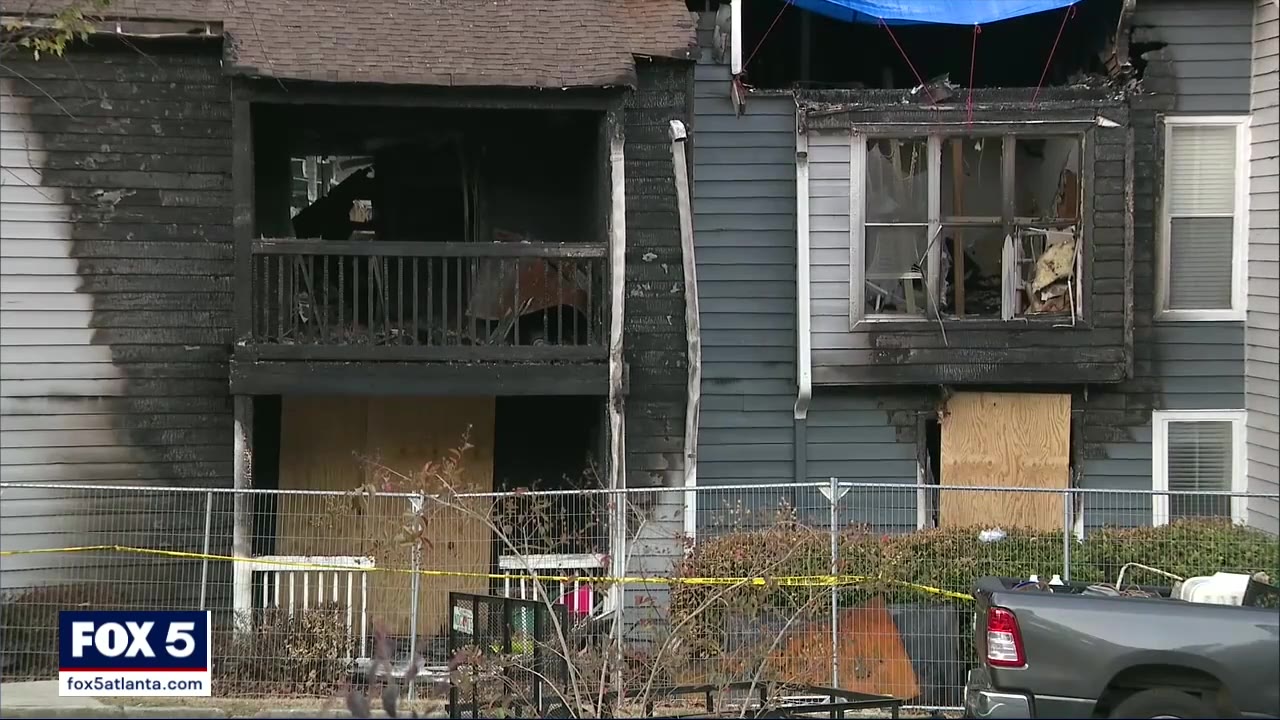 Gwinnett County firefighters say the blaze started in another unit's kitchen, but quickly spread. Ten apartments were damaged or destroyed.