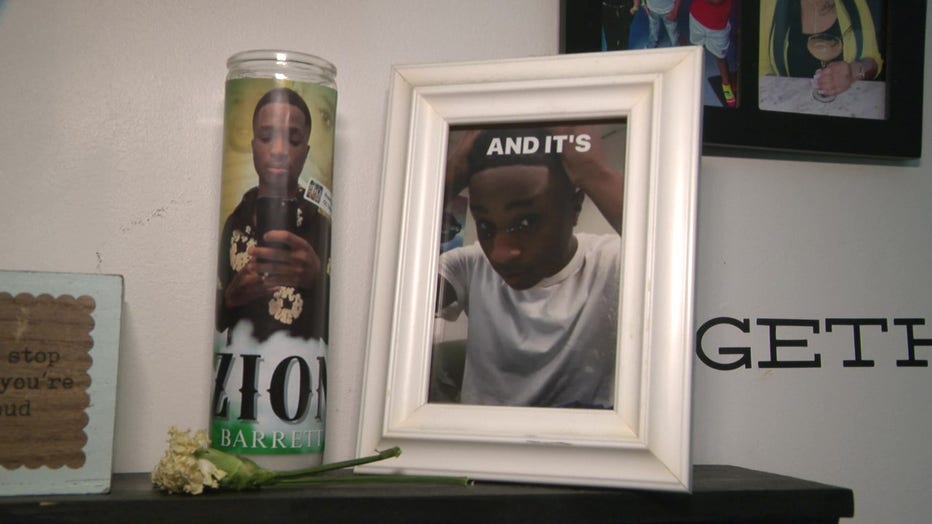 A place of remembrance for 16-year-old Zion Barrett sits in his grandmother's home. (FOX 5)