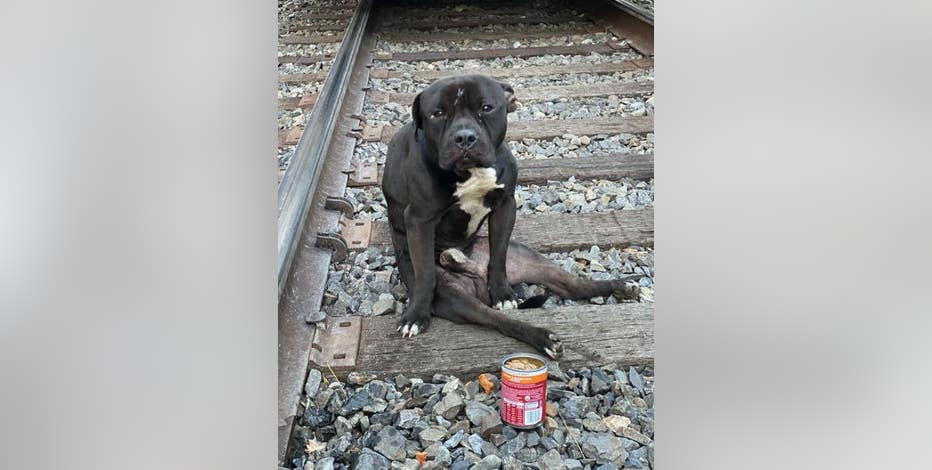 "Someone has literally dumped this poor dog on the train tracks, he has been laying here for two days," the organization said. "He has literally been laying his body down and the train has been going over him."