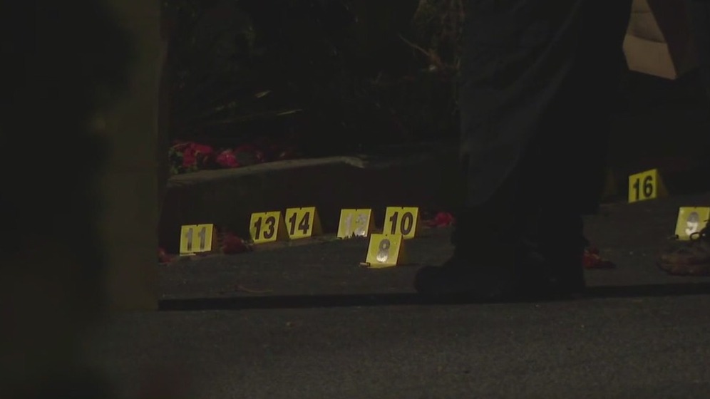 Investigators cordoned off a large portion of the parking lot with crime scene tape and placed nearly two dozen evidence markers around the area.